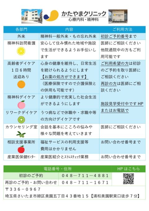 医療法人片山会 かたやまクリニック(クリニック併設高齢者デイケア)