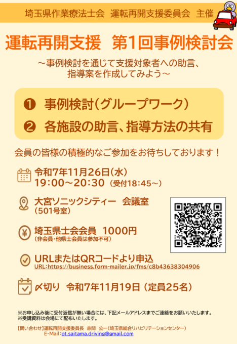 【対面研修】運転再開支援委員会第1回事例検討会 ~事例検討を通じて支援対象者への助言、指導案を作成してみよう~