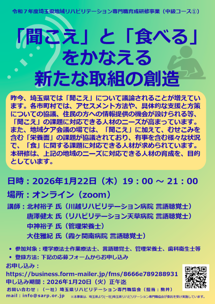 本研修会は、埼玉県より一般社団法人埼玉県リハビリテーション専門職協会への委託事業です