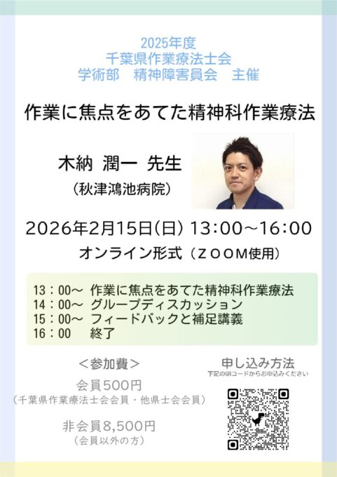担当:千葉県作業療法士会 学術部 精神障害委員会 辻本
