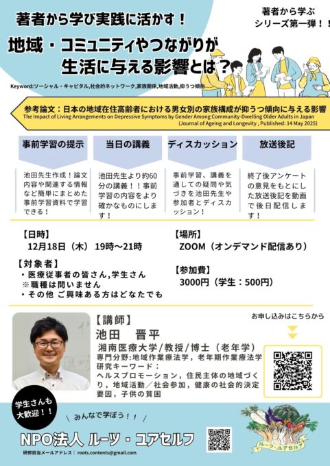 主催:NPO法人ルーツ・ユアセルフ/ 形式:Zoom(オンライン)