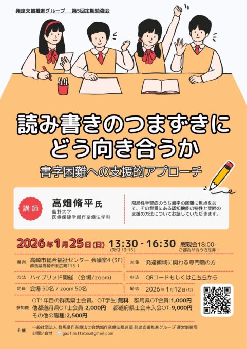 主催:一般社団法人群馬県作業療法士会(地域作業療法推進部 発達支援推進グループ)