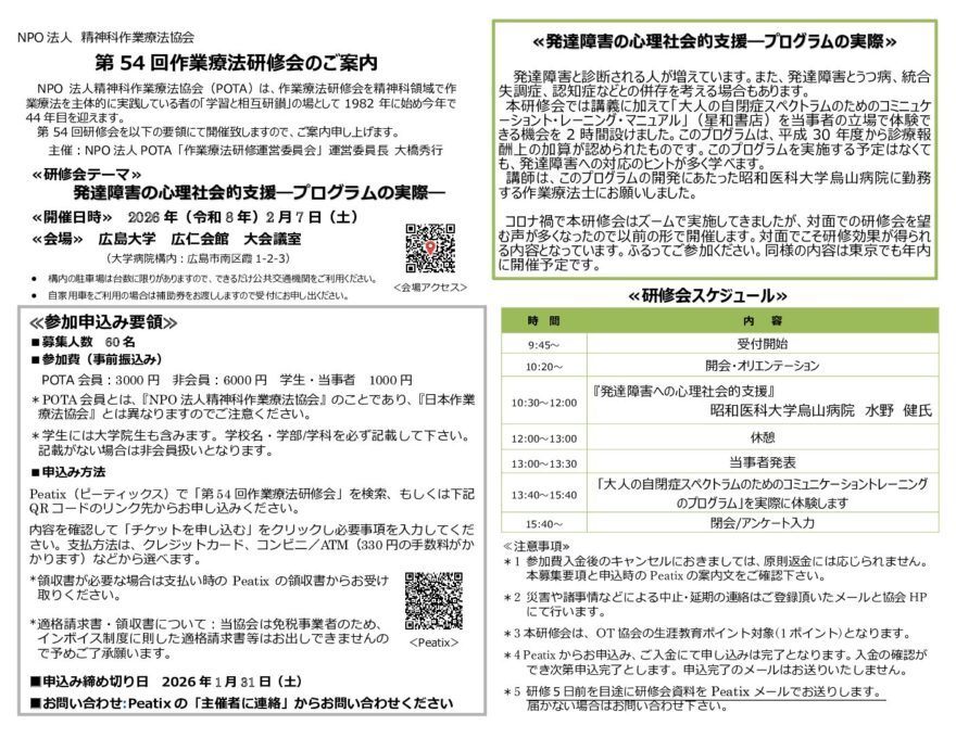 - 第54回作業療法研修会 発達障害の心理社会的支援―プログラムの実際―