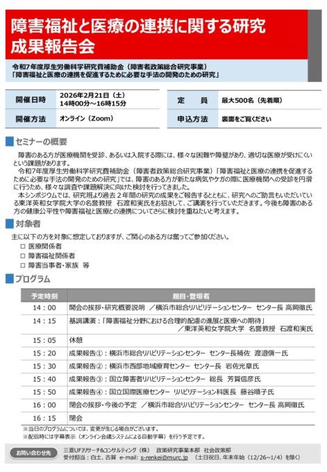 - 障害福祉と医療の連携に関する研究成果報告会