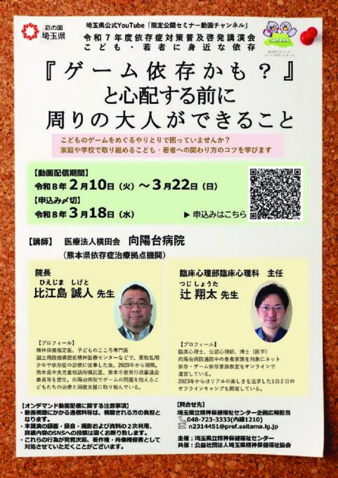 令和7年度依存症対策普及啓発講演会「こども・若者に身近な依存『ゲーム依存かも?』と心配する前に周りの大人ができること」